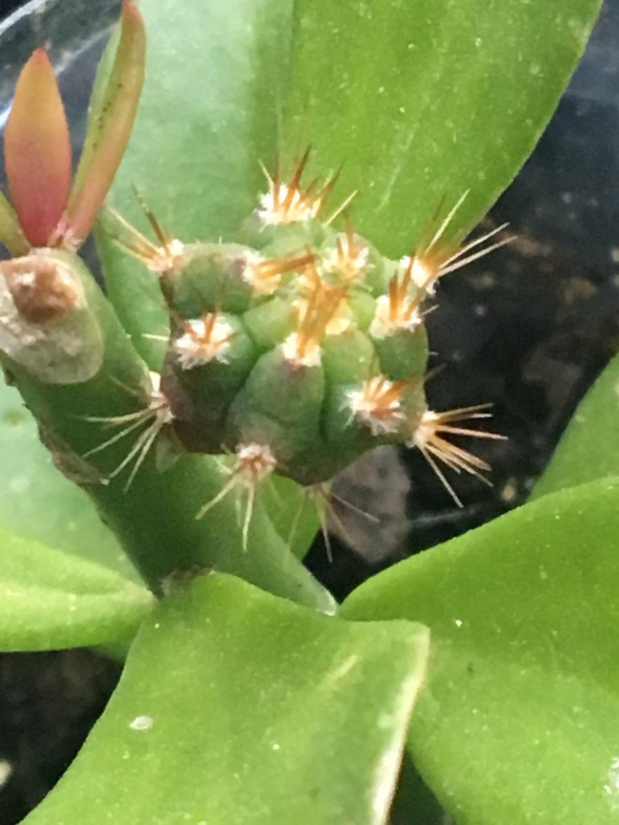 Zelly hybrid seedlings grafted to areoles of Pereskiopsis