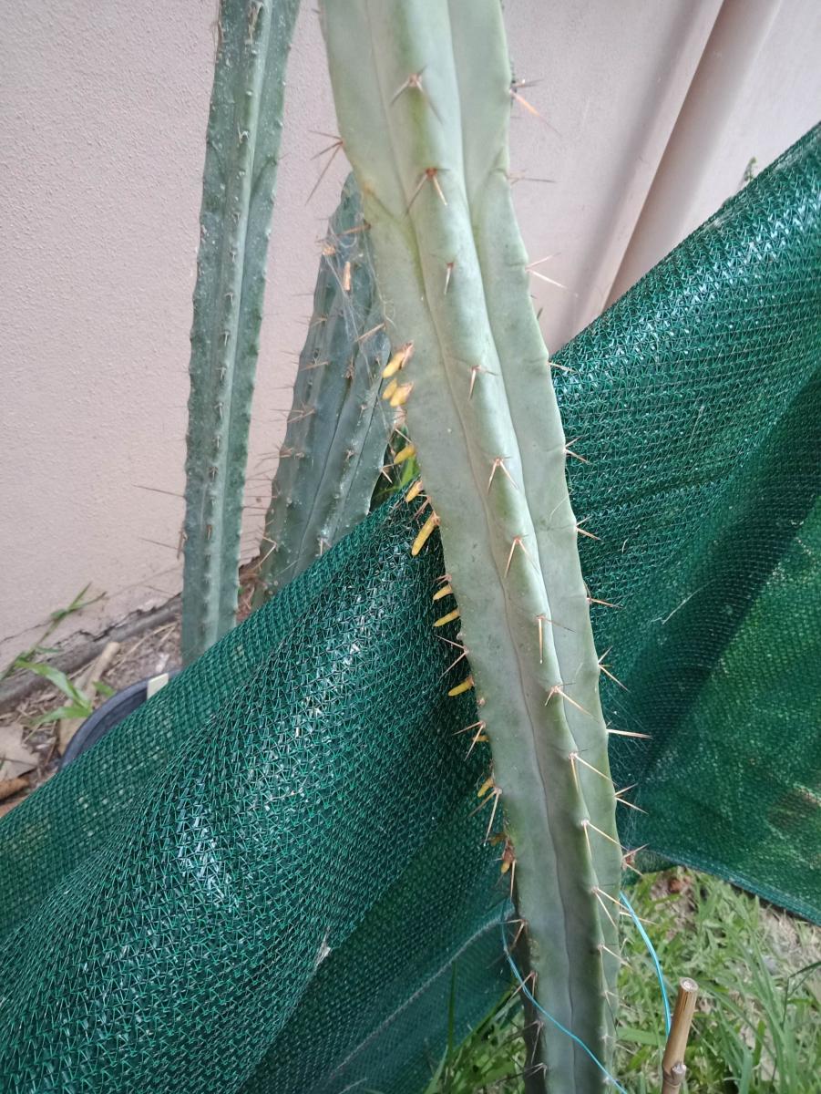 This bridgesii has leant on some vertical shade cloth and developed a heck of a lot of roots. I guess it must feel there is something there and is having a crack.
