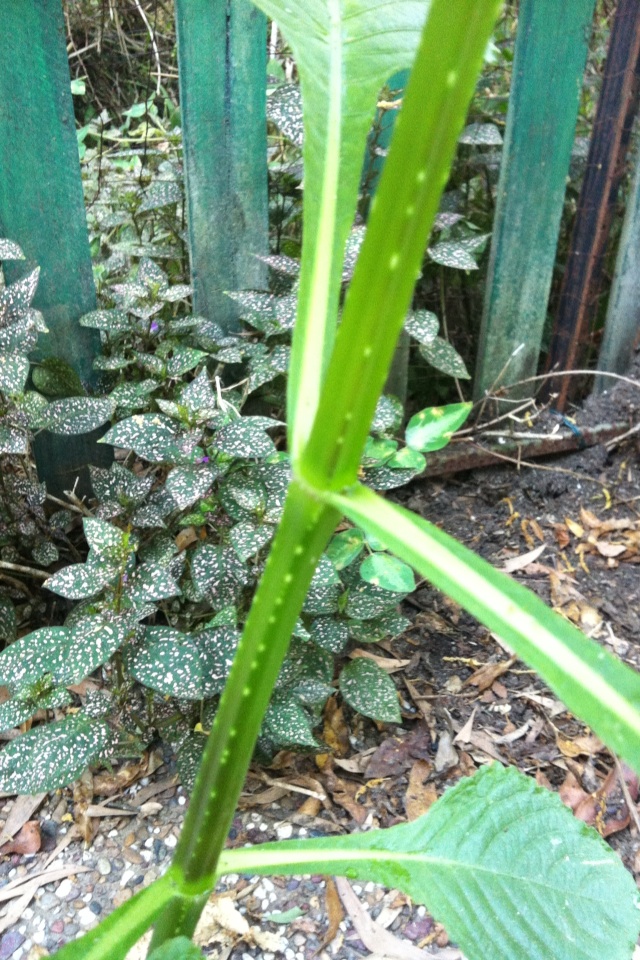 Stem is square and hollow, has kind of white spikes but not real spikes just small raised white coloured bits along edge of the stem.