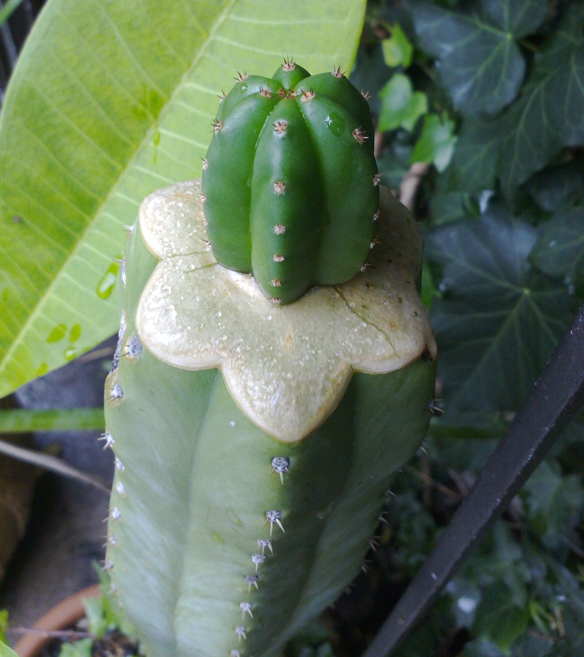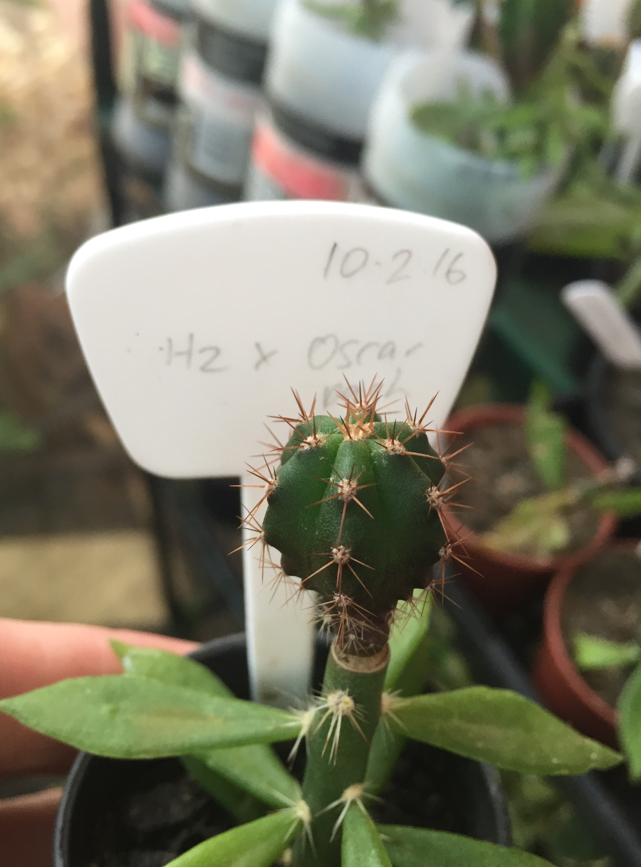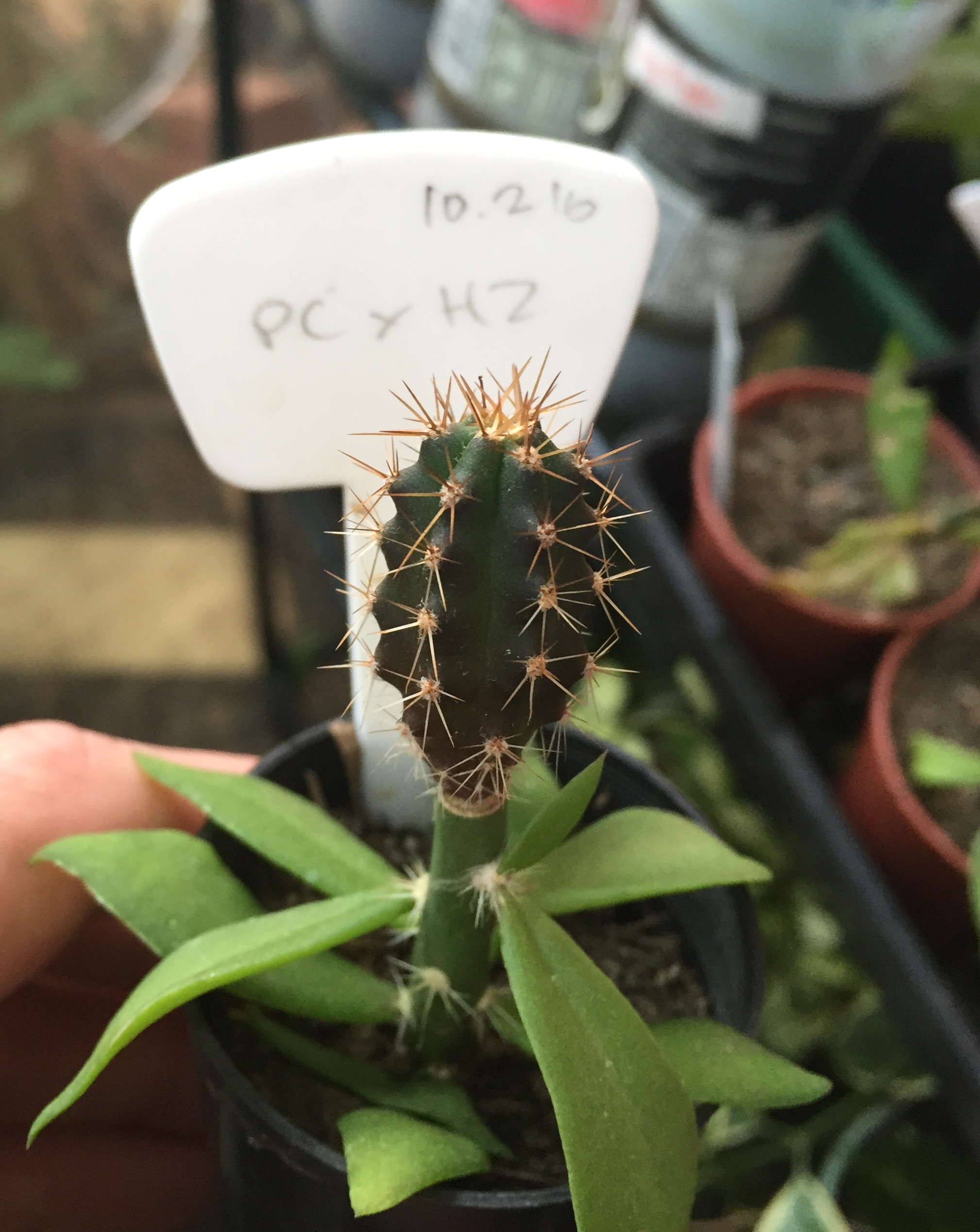 zelly Posted June 17, 2016 Share Posted June 17, 2016 Oscar started life one of 4-5 of the same hybrid seedlings of unknown parentage all growing together in a pot.  Eventually the pot was planted in the ground and one column really took off.  Another seedling grew normal for a bit then went totally monstrous.  A third and fourth seedling went semi monstrous and the fifth seedling is looking pretty normal.  All but the first are nearly spineless or really small spines.  The monstrous plant first grew a Y with both legs of the Y cresting, now one leg is reverting back to a somewhat columnar growth.  Just now I'm in the process of transplanting the seedlings from the tub to pots, who knows, maybe I'll find a few freaks among them.  2 Quote Link to comment Share on other sites More sharing options...