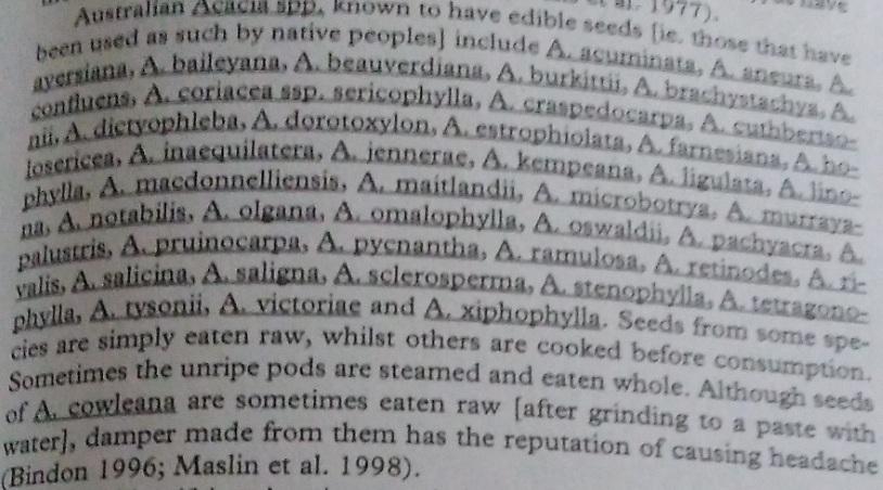 bardo Posted May 16, 2017 Share Posted May 16, 2017 Hi, I am looking to try find if there are any non edible or toxic native acacia seeds out there, so far all I have found is along these lines - "About 956 Australian Acacia species have been recorded. Nearly all of them appear to have edible seeds - on the basis of lack of evidence to the contrary - but the bushfood industry wisely prefers to use species which already have some history of safe use in traditional Aboriginal communities." info via Australia plants online. "Many of our acacias have toxic or poisonous seeds, however research is enabling some wattle seeds to be used in cooking" info via Australian plants society central coast group My bush tucker books are pretty indistinct on this and I can not seem to source any solid info on native toxic acacia seeds, So my question is if any one knows of any native toxic acacia seeds ? or any that are not edible? If so I would love to know more : ) Also I am trying to find a good book on Australian acacia identification, if any one knows of any good books on this subject I would love to know. Has any body got an opinion on the book, Acacias of Australia by Marion Simmons ? I am thinking I am going to be buying the book, Plants of central Queensland by Eric Anderson regardless of finding a good book on acacia identification or not. I would love to source a copy of Flora of Australia volume 11a and 11b if any one can direct me to an available copy I would be very grateful : ) It seem to be impossible to find. As an incentive to help me find out if there are any toxic/inedible native acacia seeds and what they might be, and a good native acacia identification book (not electronic) I will send a native acacia seed pack consisting of, longifolia, maidenii, acuminata 'narrow', concurrens, colei, burkittii, Victoriae and floribunda approx. 20-30 seeds of each to the best answer, and approx. 30-60 random acacia seeds to any helpful answers, I will send after 1 month of posting this to allow some time for answers, so approx. 16/6/17 after this date the offer will no longer be available. Thanks in advance for any and all help : ) Quote Link to comment Share on other sites More sharing options...