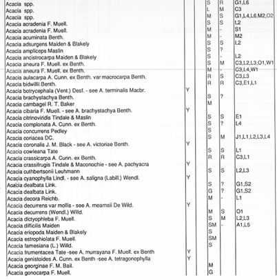Alchemica Posted October 17 Share Posted October 17 (edited) Sorry this is a very late reply but I was looking at Snu's Garden of Eden and noticed this, which may help you/others answer the opposite to your question, that is, which are considered edible... Also, I'm assuming the main toxicities may be attributed to things like cyanogenic glycosides, or saponins? So maybe, one could assume an Acacia that is notably cyanogenic eg A. binervia, might have related cyanogenic toxicity in the seeds, which would likely be reduced on appropriate processing? Cyanogenic Glycosides: These compounds, when metabolized, release hydrogen cyanide (HCN), a potent cellular poison. HCN interferes with cellular respiration, leading to oxygen deprivation at the cellular level. Symptoms in affected animals can include rapid breathing, muscle tremors, staggering, convulsions, and ultimately death due to respiratory failure. The young leaves and seeds often have the highest concentrations. Tannins: While tannins are common in many plants and can have beneficial properties, high concentrations in Acacia can be problematic. They bind to proteins in the digestive tract, reducing nutrient absorption and potentially causing gastrointestinal irritation, reduced weight gain, and kidney damage in severe cases. Alkaloids: Some Acacia species contain various alkaloids, which are nitrogen-containing organic compounds with diverse pharmacological effects. These can affect the nervous system, digestive system, or other organ systems, leading to a range of symptoms from neurological dysfunction to organ damage. Saponins: These compounds can cause gastrointestinal upset and, in some cases, hemolytic effects (destruction of red blood cells). EDIT: This lists edible wattles too: checklist1991.pdf Edited October 21 by Alchemica Quote Link to comment Share on other sites More sharing options...