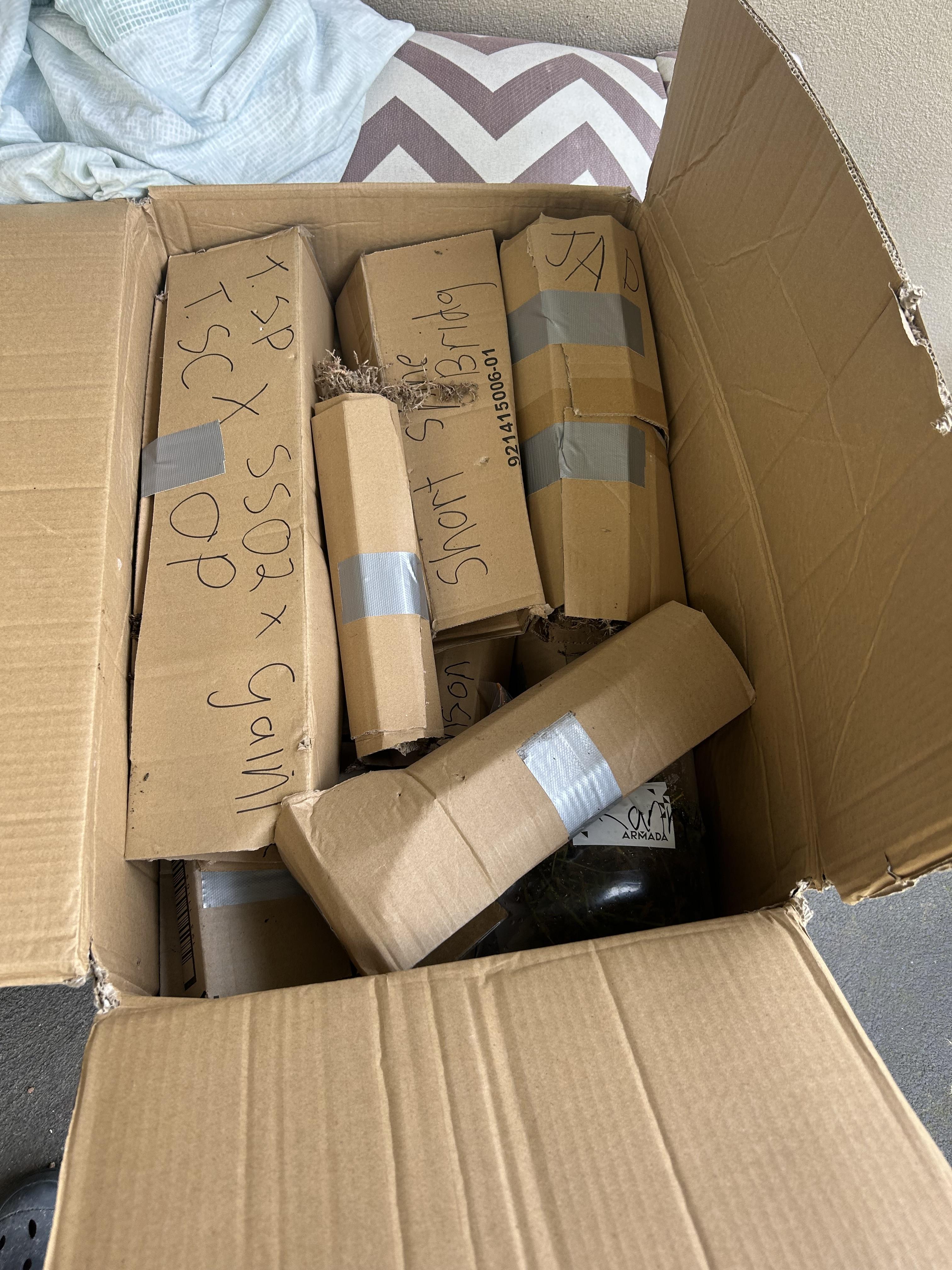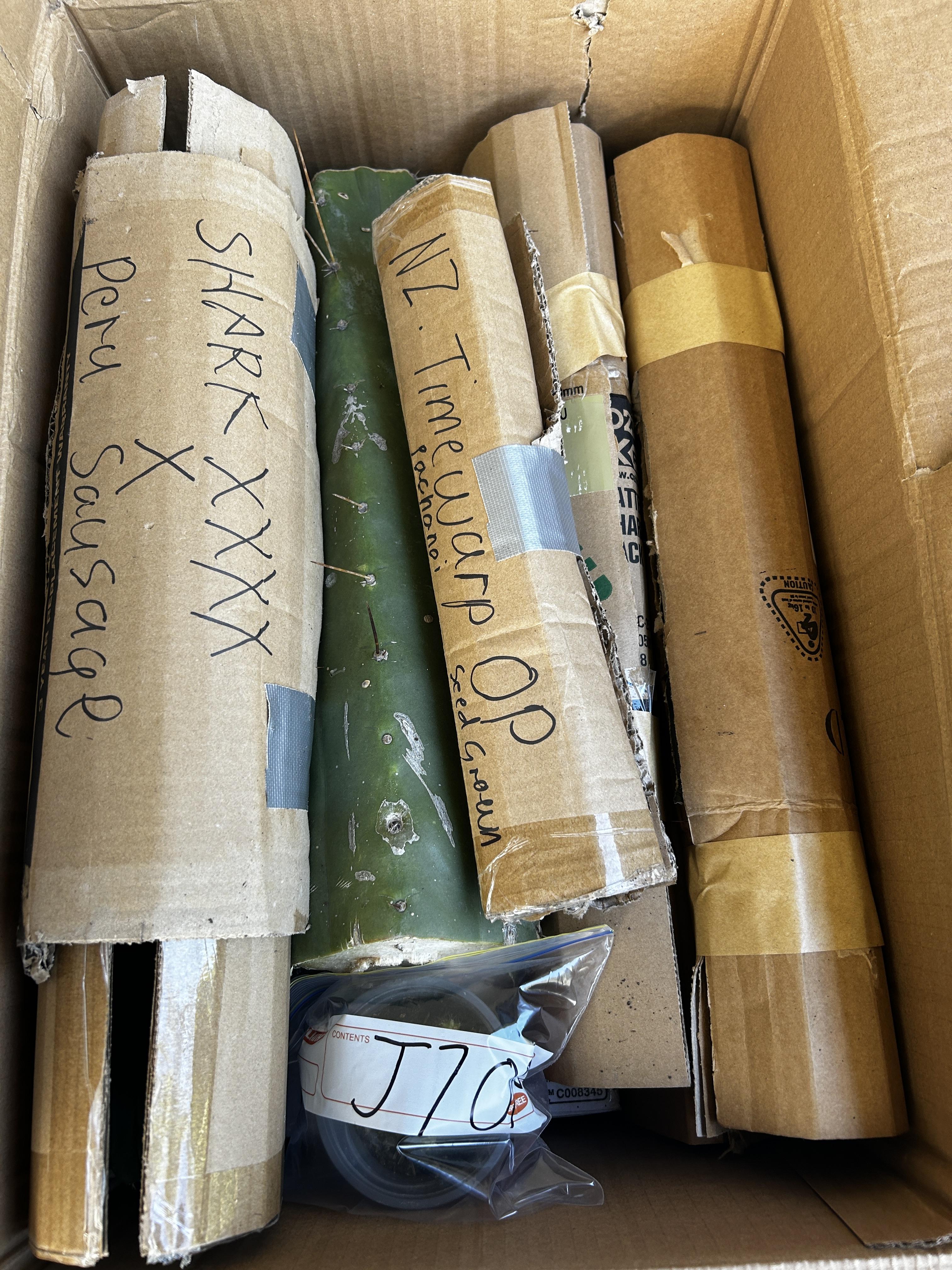 Starward Posted October 21 Author Share Posted October 21 Put together another care package this time just over 13kg of cactus. I included some seedlings of J7 OP, and one larger seedling of NZ Timewarp OP that I grew from seed. It’s a pachanoi but it’s considered one of the better varieties they have in NZ, so it might be interest - also Timewarp is not common in Australia. Preparing another package to send next week. Still looking for trades or giving away - still have enough for 4 more box loads. Would love to find, Neem, Mexian Dream Herb, and Vilca/Yope, a cold tolerant BrugmansiA, or anything exotic. Quote Link to comment Share on other sites More sharing options...